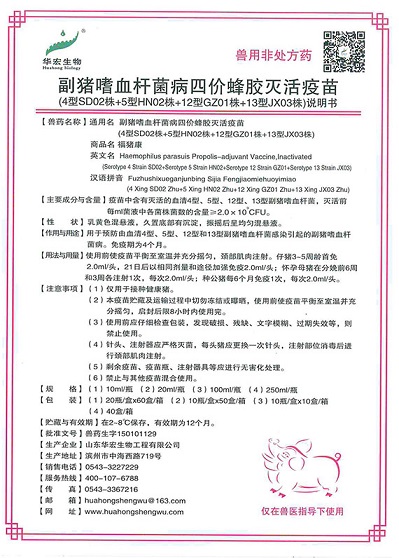 副豬嗜血桿菌病四價蜂膠滅活疫苗(4型SD02株+5型HN02株+12型GZ01株+13型JX03株)