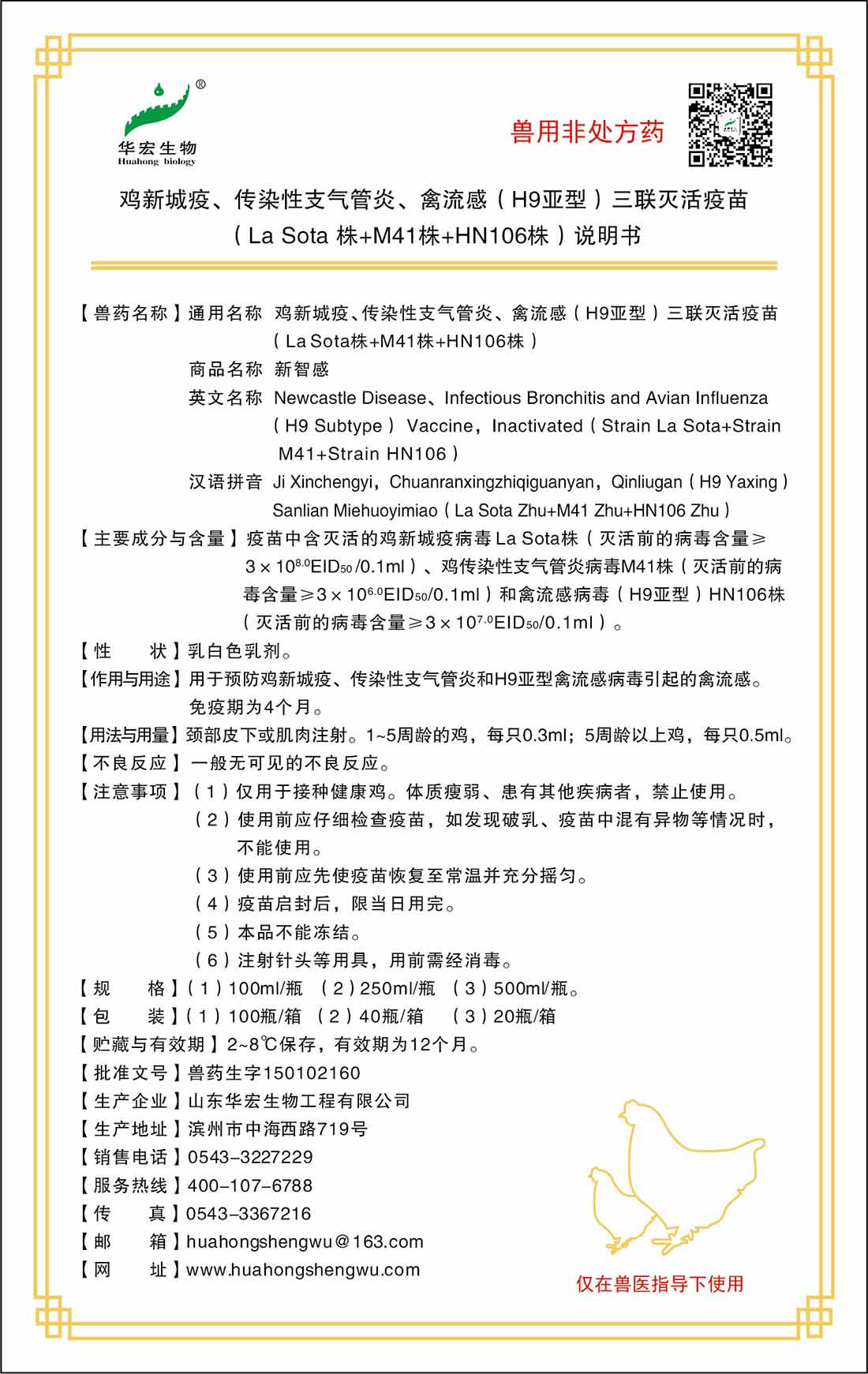 雞新城疫、傳染性支氣管炎、禽流感三聯滅活疫苗