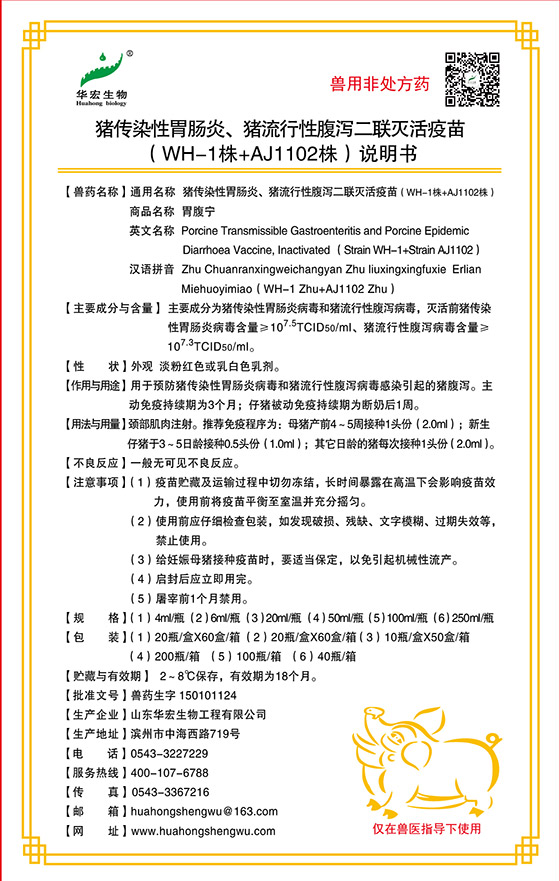 豬傳染性胃腸炎、豬流行性腹瀉二聯(lián)滅活疫苗(WH-1株+AJ1102株)