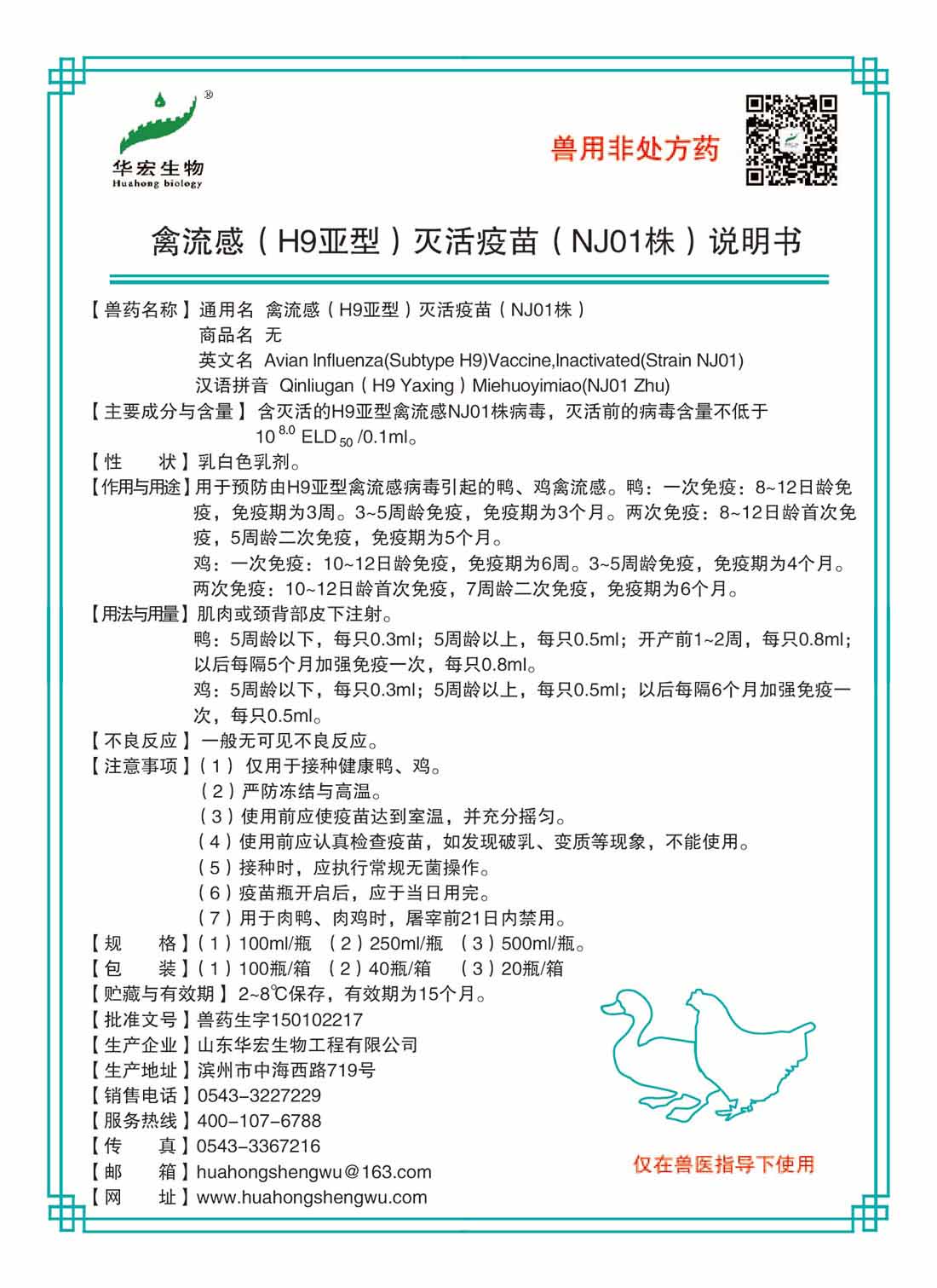 禽流感(H9亞型)滅活疫苗(NJ01株)