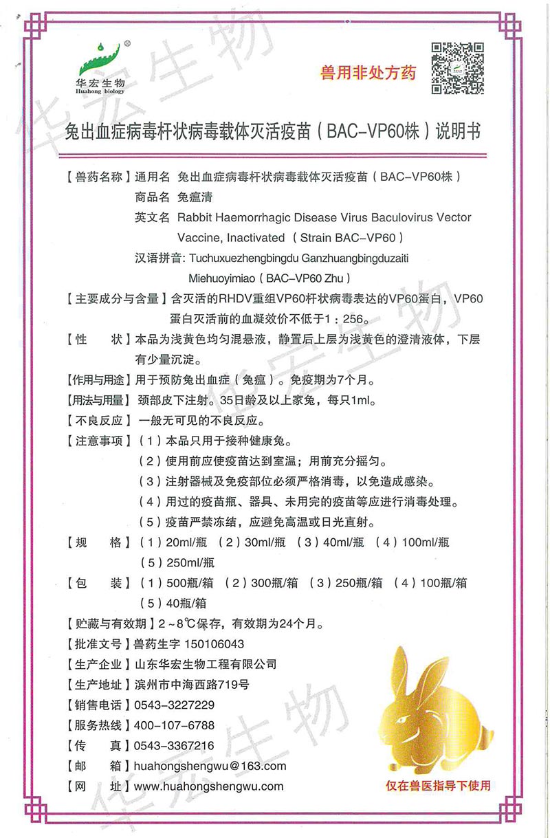 兔出血癥病毒桿狀病毒載體滅活疫苗(BAC-VP60株)