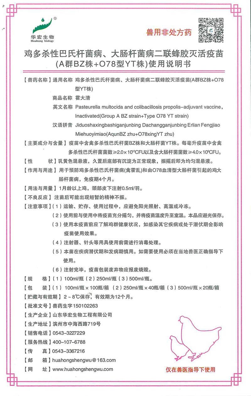 雞多殺性巴氏桿菌病、大腸桿菌病二聯蜂膠滅活疫苗