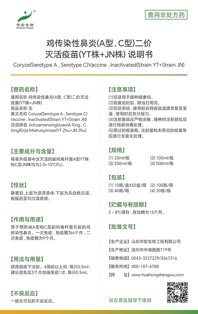 雞傳染性鼻炎(A型、C型)二價滅活疫苗(YT株+JN株)